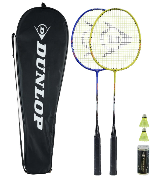 The 2-player set includes 2 rackets, 2 synthetic shuttlecocks, and a carrying bag.