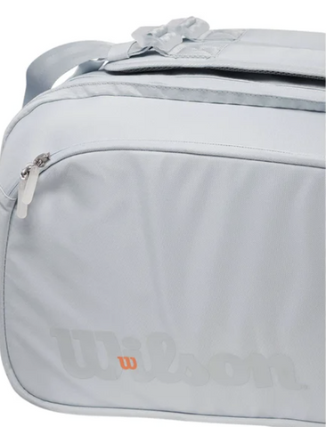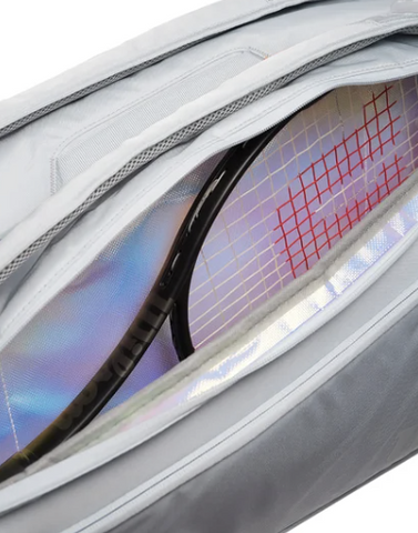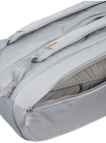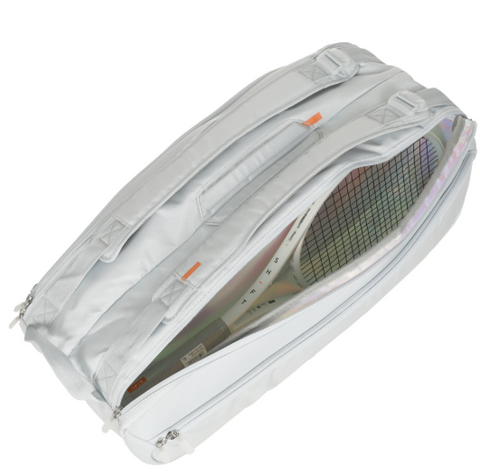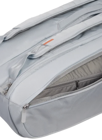 The Wilson Shift bag has enough space for up to nine rackets in the two main compartments, each of which is thermo-regulated to shield from extreme temperatures and preserve racket tension. You can stash extra gear like balls and grips inside the large exterior pockets. The bag is reinforced at the sides and comes with a dual carrying system.