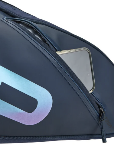 The TOUR RACQUET BAG S now comes in a new design and holds up to three racquets. It features an outer zip pocket for easy access to small items and an adjustable shoulder strap for comfortable carrying. To help reduce plastic use, HEAD uses a recycled paper hangtag tied with hemp cord, and the bag is packaged in recycled plastic.