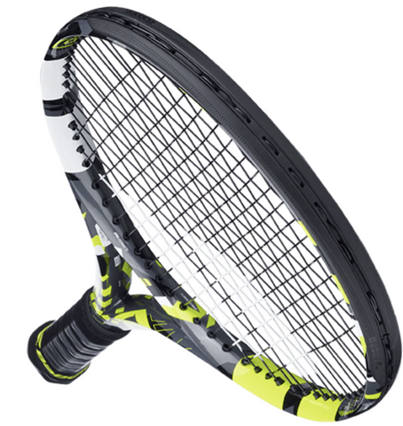 The new Pure Aero’s tighter string pattern lets you swing fully, generating more spin while maintaining precise control of ball trajectories.