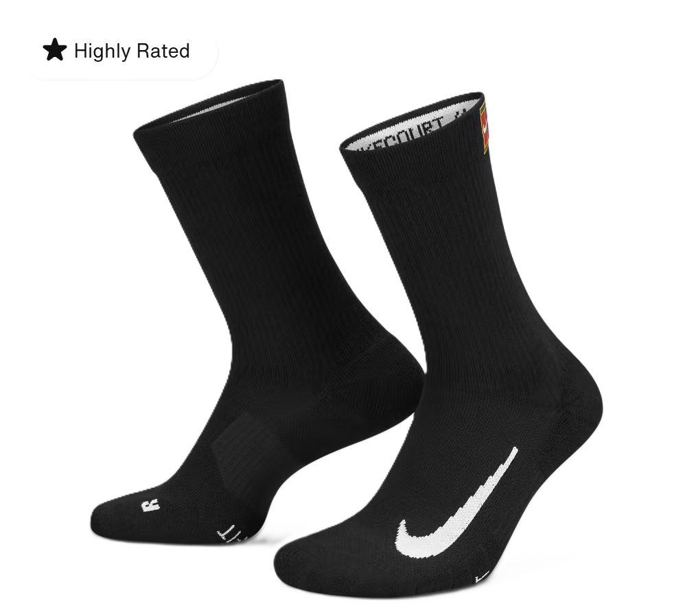 The NikeCourt Multiplier Cushioned Socks bring comfort to the next level thanks to plush cushioning and soft, sweat-wicking fabric