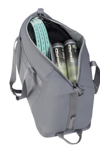 The Head Tour Tote 35L Bag fits up to 3 racquets plus extra gear, with a separate shoe sack and two air-mesh pockets for balls or a water bottle. Two front pockets add storage, while side “C” rings let you clip the bag down for easier carrying. Transport is simple with grab handles or the padded, adjustable shoulder strap.